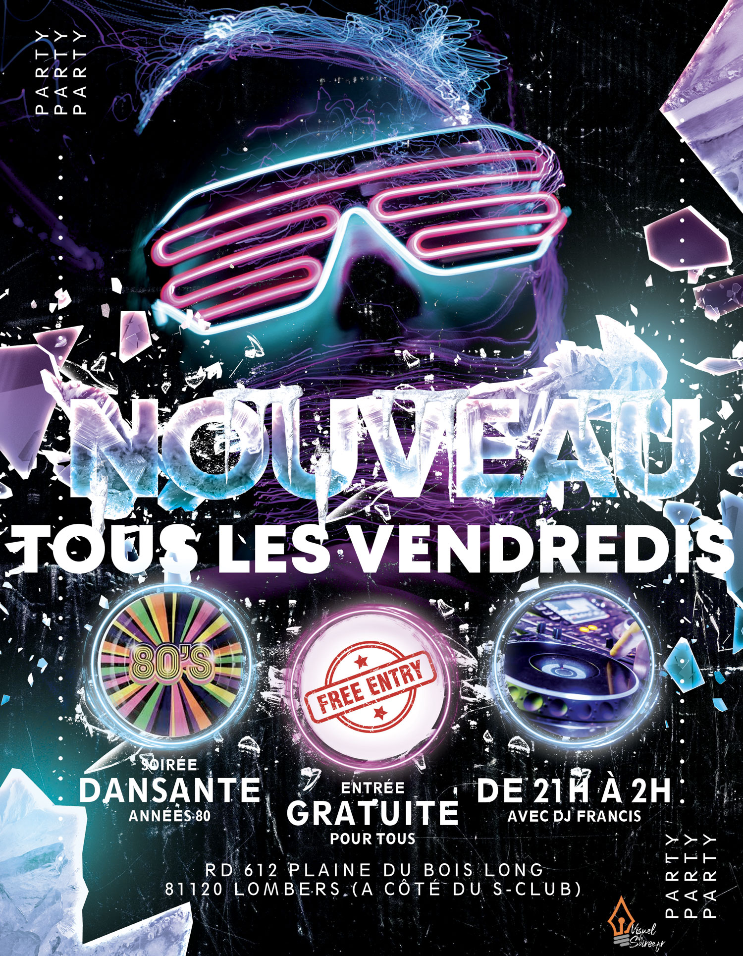 Je suis infographiste, spécialisé en visuels de soirées, pour le compte de bar, restaurants, salles de concerts, discothèques, clubs privés, etc etc ...